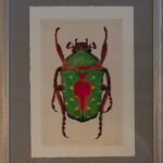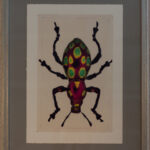 Cuadro con una moldura de 2cm en blanco y plata y lámina en papel gofrado cortado a mano con motivo de dibujos de insectos.