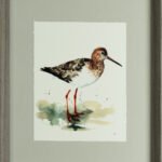 Cuadro con moldura forma de cuña en una madera gris y lámina de papel gofrado de 315gr cortado a mano con dibujos acuarelados de aves.