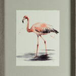 Cuadro con moldura forma de cuña en una madera gris y lámina de papel gofrado de 315gr cortado a mano con dibujos acuarelados de aves.