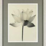 Alegre cuadro de inspiración japonesa con un paspartú en ventana circular y una original moldura roja.
