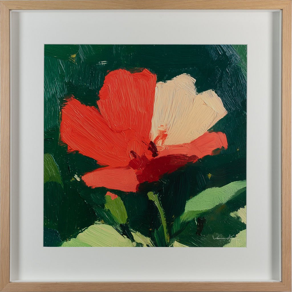 Lámina giclée sobre papel artístico de 210gr, enmarcada con un paspartú libre de ácidos, en vitrina con una moldura chapada en roble natural