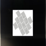 Lámina giclée sobre papel gofrado reproduciendo motivos geométricos enmarcada con un gran passepartout negro libre de ácido y un perfil de aluminio brillante.