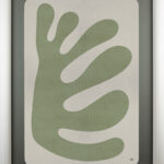Original diseño en el que la lámina, el passepartout con las esquinas redondeadas y la moldura buscan potenciar la sensación de las curvas. Un diseño colorido inspirado en los 70. Moldura decorada a mano, lámina giclée impresa sobre papel artístico de calidad museo y 215gr, passepartout libre de ácidos.