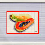 Cuadro de lámina giclée sobre papel recubierto sobre un fondo acanalado blanco y una sencilla moldura blanca lacada.