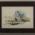 Cuadro de lámina giclée sobre papel recubierto con un passepartout libre de ácidos y una moldura cuña blanca y plata rozada.