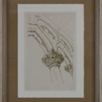 Cuadro de lámina giclée en papel gofrado cortado a mano sobre un fondo acanalado y enmarcado con una moldura blanca rozada y plata,