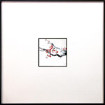Cuadro de impresión giclée sobre papel artístico calidad museo de 225gr. reproduciendo motivos florales de inspiración japonesa, enmarcado con un amplio passepartout y un filo de aluminio negro.