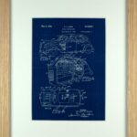 La lámina giclée sobre papel recubierto de 185gr representa el diseño de patentes de diferentes diseños de automóviles de los años 20. Esta enmarcada con una moldura chapada en roble y un passepartout blanco libre de ácidos